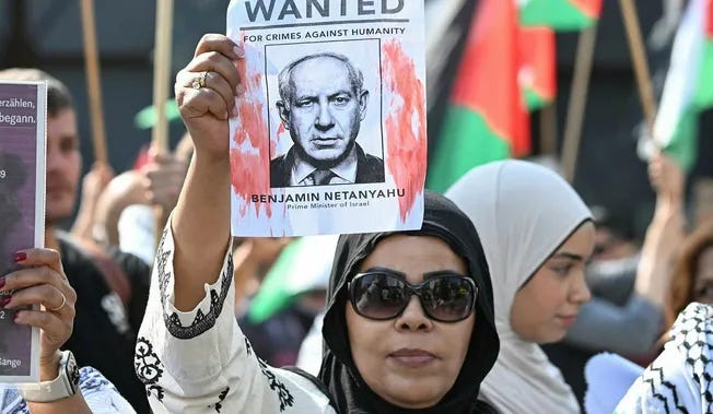 A woman holds up a 'Wanted' poster featuring Prime Minister Benjamin Netanyahu as they take part in a 'Solidarity with Palestine' demonstration in BerlinCredit: AFP / Ralf Hirschberger