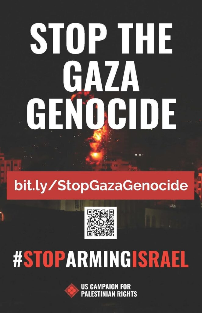 There are flyers like the one below along with other material in the Stop The Gaza Genocide Toolkit on the US Campaign for Palestinian Rights website.