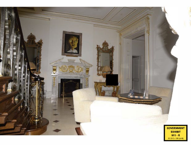 A photo taken in Epstein’s townhouse when authorities entered in 2019, later introduced as evidence in court.