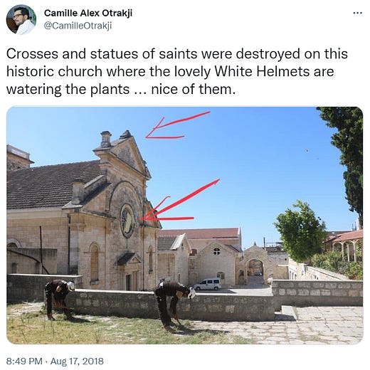 “This violates every single human rights declaration ever created since the second world war. The White Helmets and these armed groups should not be protected. They should be prosecuted for what they have done, not only to Christian communities but to all Syrian communities since 2011.”